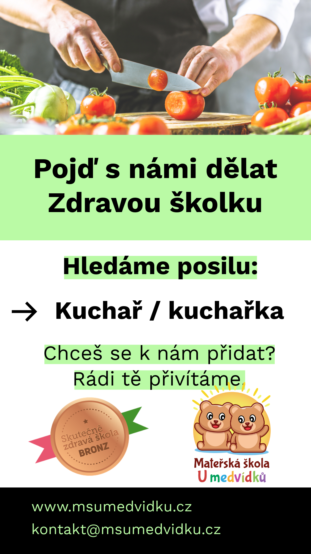Hledáme vyučenou kuchařku do naší mateřské školy s nástupem od 1. května 2026